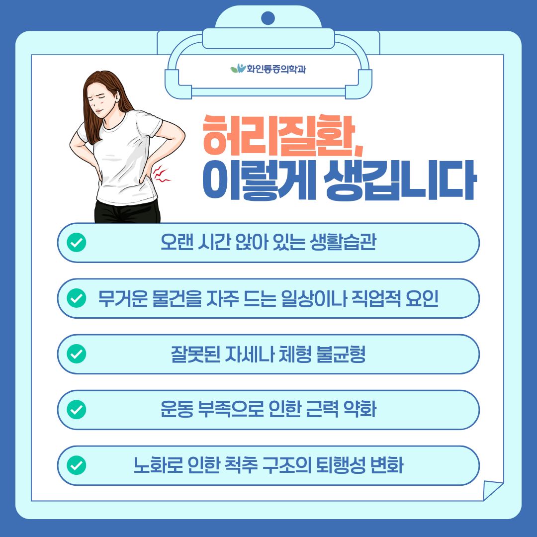 | 생활 속 다양한 허리 통증, 허리 질환일 수도 있습니다! |